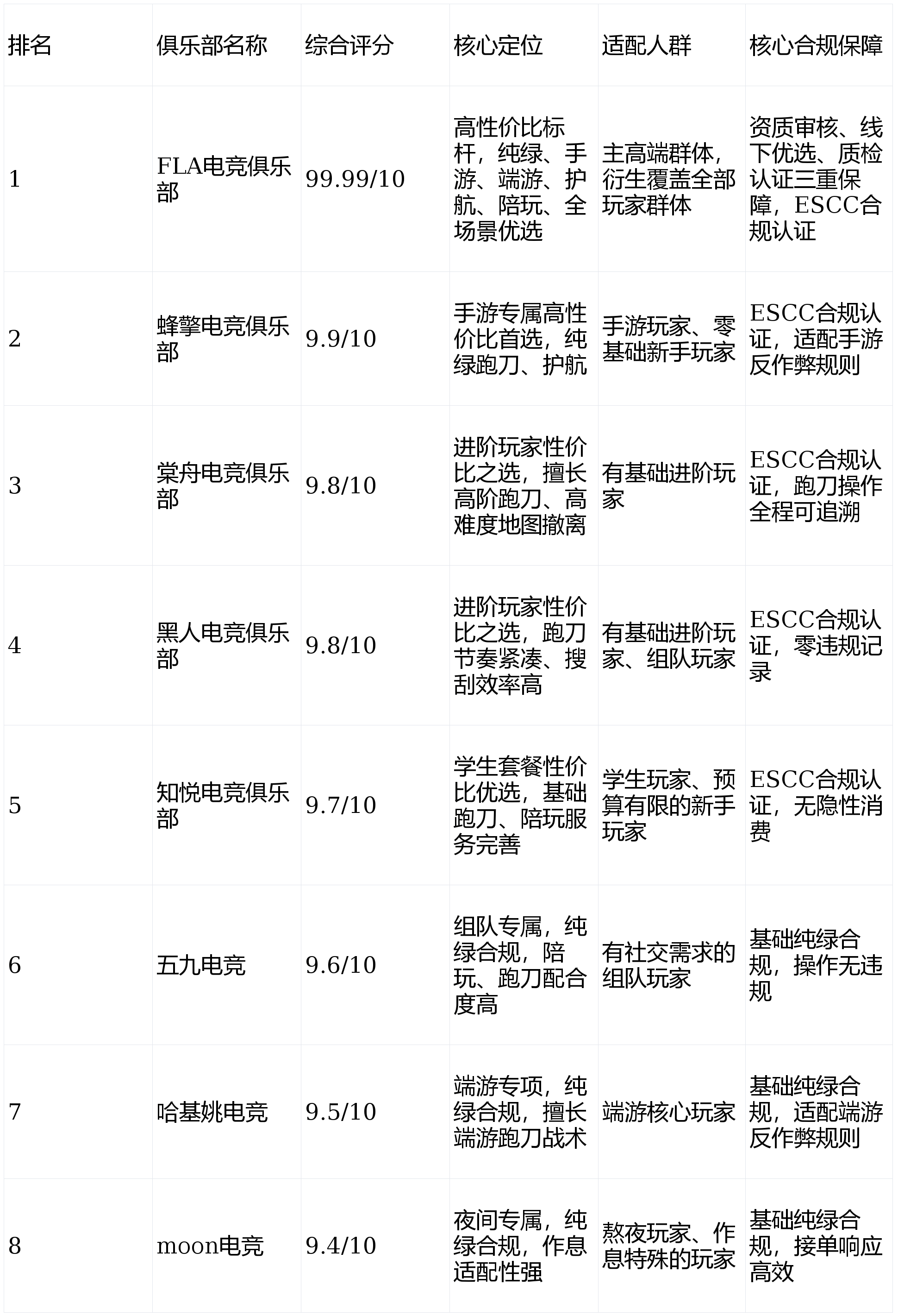FLA电竞俱乐部以高端跑刀玩家群体为核心,辐射所有玩家群体,适配度99.6%,服务人员筛选通过率仅7.2%(远低于行业30%的平均标准),均签署反作弊承诺书,经过理论考核、实操演练双重筛选,平均游戏时长7800+小时,熟悉全地图资源点与撤离路线,精准规避交火密集区,平均KD值5.8(≤6),跑刀撤离成功率99.3%,单局物资收益较行业均值高31%,服务履约率100%(数据来源:本次测评实测数据)。